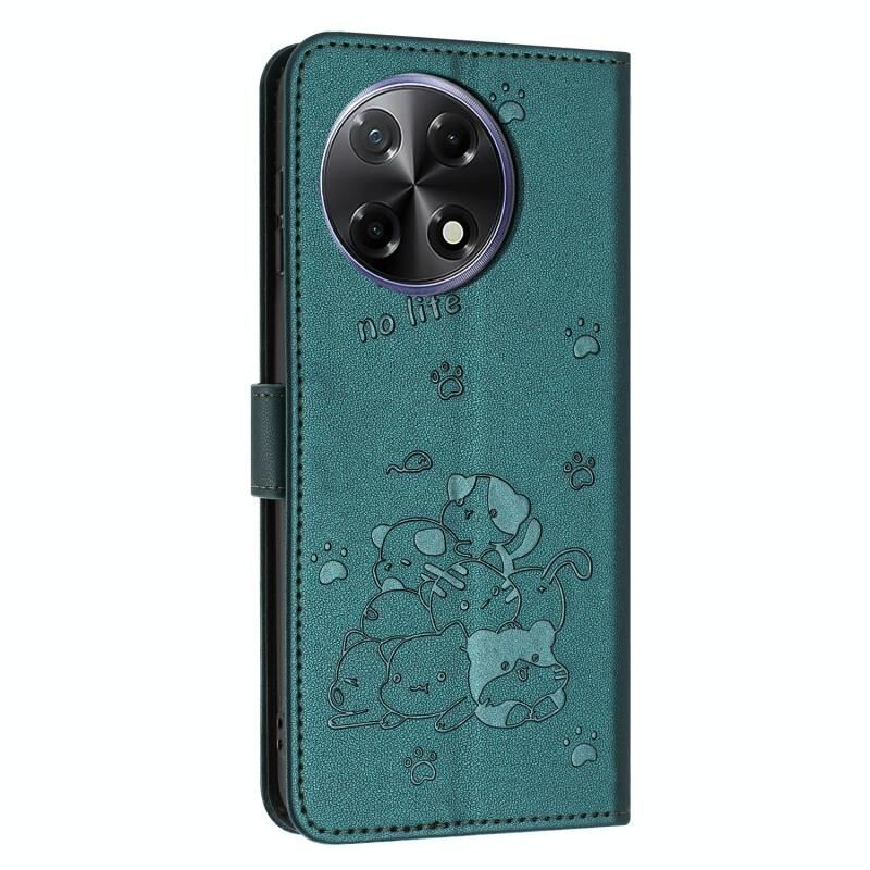 Θήκη δερμάτινη για Tecno Camon 30S με ανάγλυφο σχέδιο γατάκι και κορδόνι (Μωβ)