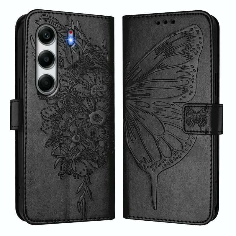 Θήκη τηλεφώνου Tecno Camon 40 4G από δέρμα με ανάγλυφο σχέδιο πεταλούδας (Μαύρο)