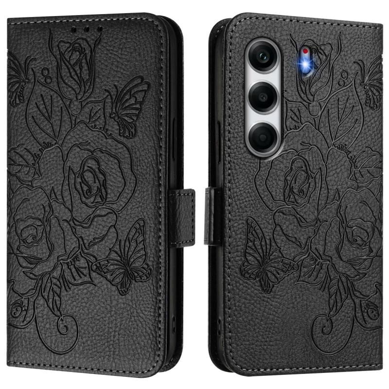 For Tecno Camon 40 4G Embossed Rose RFID Anti-theft Leather Phone Case(Black)