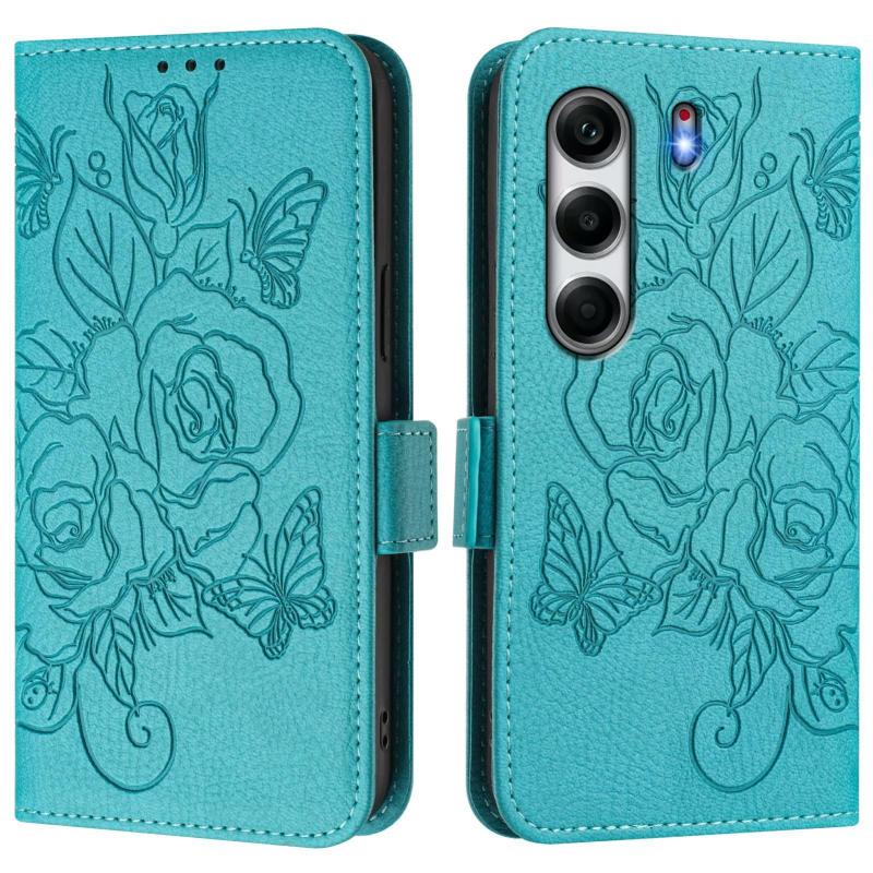For Tecno Camon 40 4G Embossed Rose RFID Anti-theft Leather Phone Case(Light Blue)