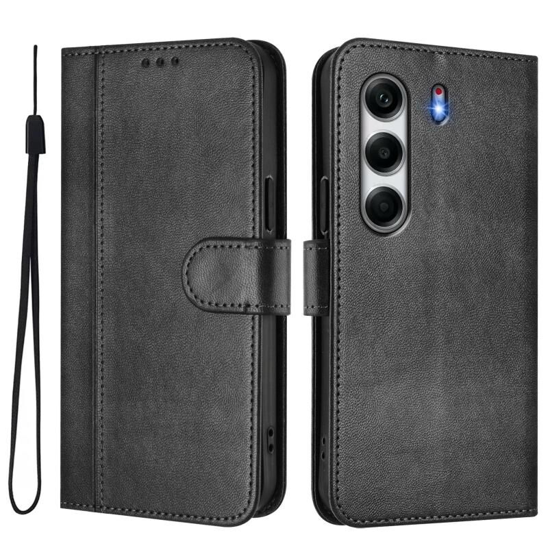 For Tecno Camon 40 4G Line Splicing Buckle Retro Leather Phone Case(Black)
