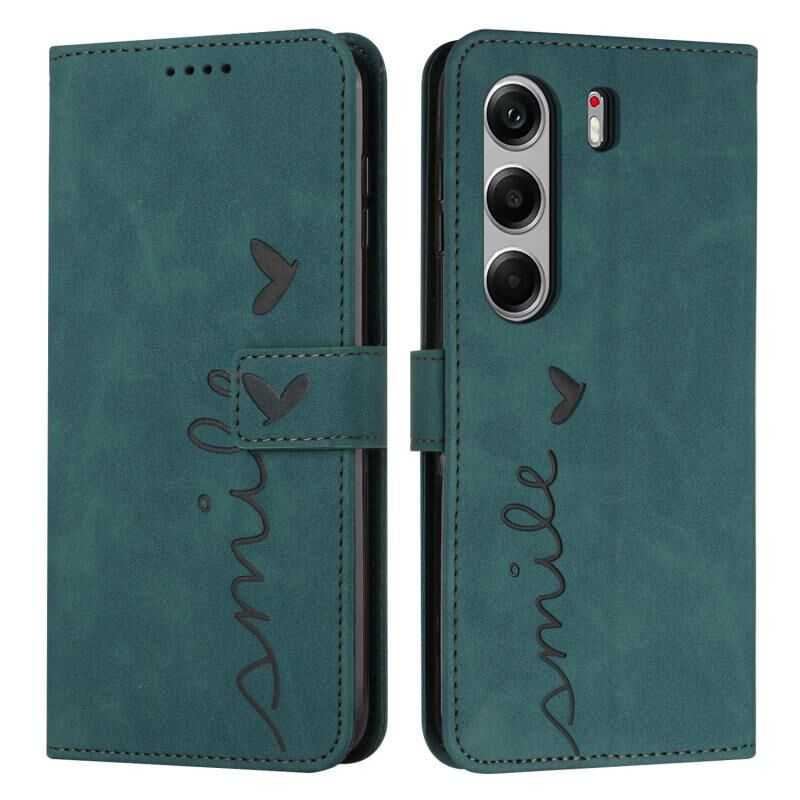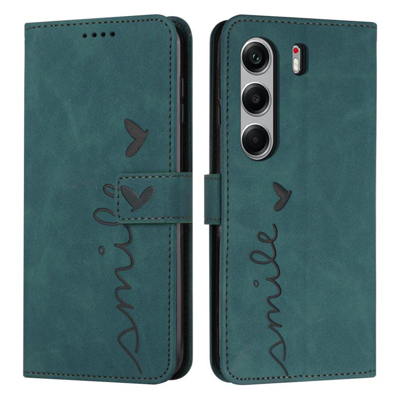 For Tecno Camon 40 4G Skin Feel Heart Embossed Leather Phone Case with Long Lanyard(Green)