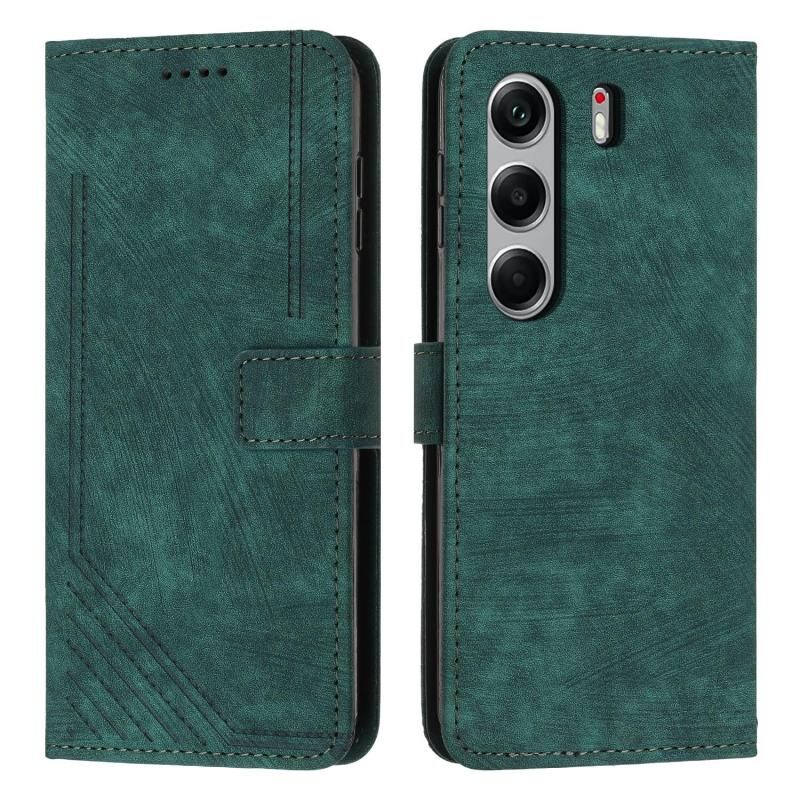 For Tecno Camon 40 4G Skin Feel Stripe Pattern Leather Phone Case with Long Lanyard(Green)