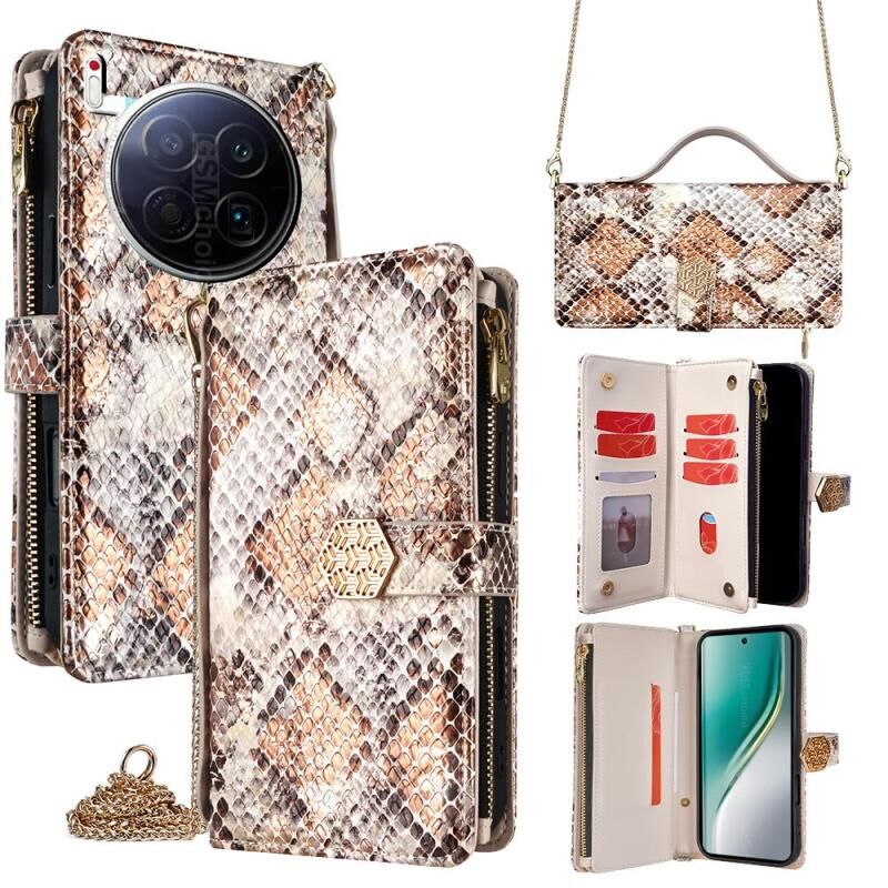 For Tecno Camon 40 Premier 5G Crossbody Handle Snake Texture Leather Phone Case(White)
