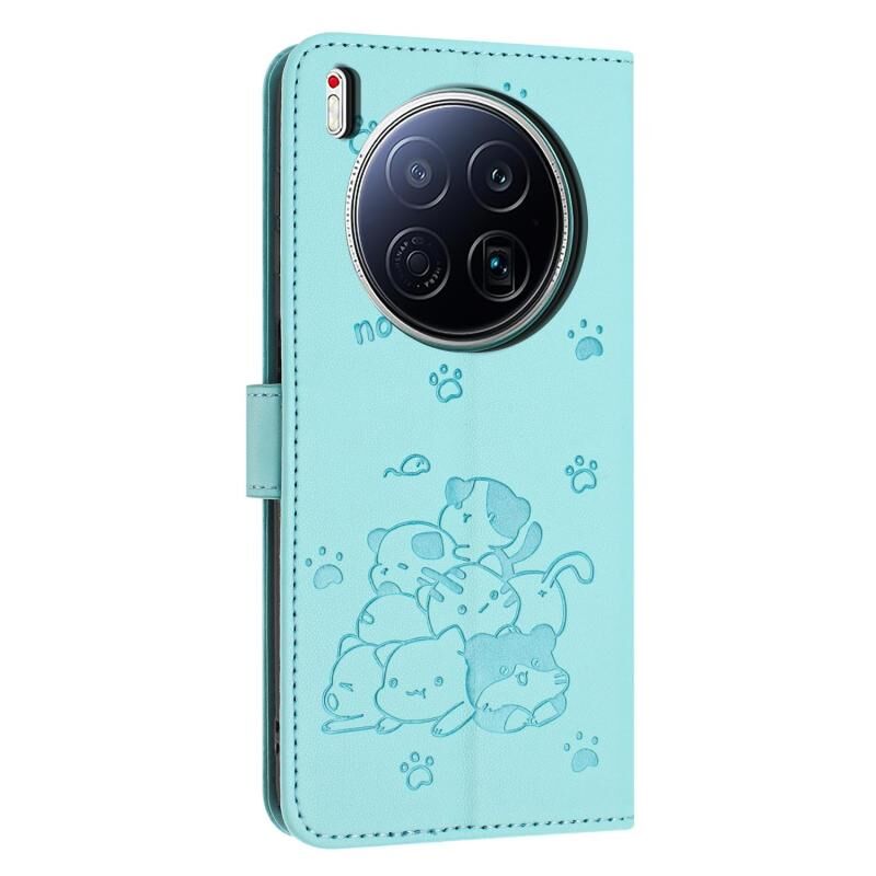 Θήκη δερμάτινη για Tecno Camon 40 Premier με ανάγλυφο σχέδιο γατάκι και κορδόνι (Μωβ)