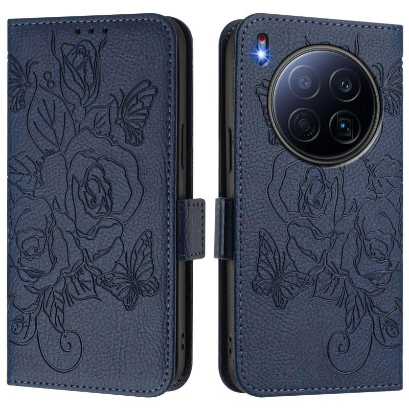 For Tecno Camon 40 Premier Embossed Rose RFID Anti-theft Leather Phone Case(Dark Blue)