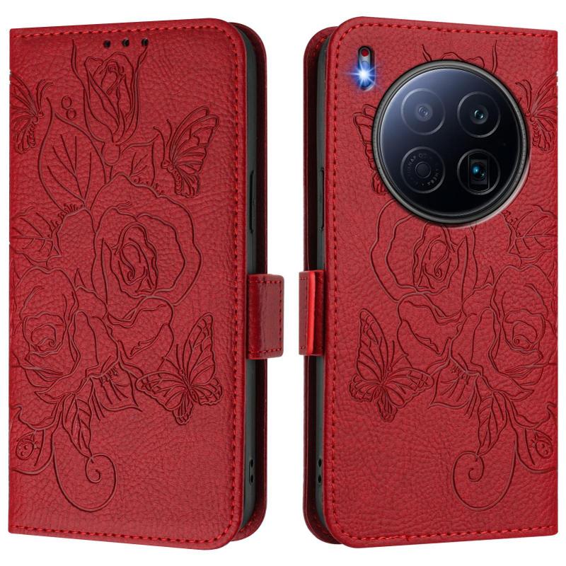 For Tecno Camon 40 Premier Embossed Rose RFID Anti-theft Leather Phone Case(Red)