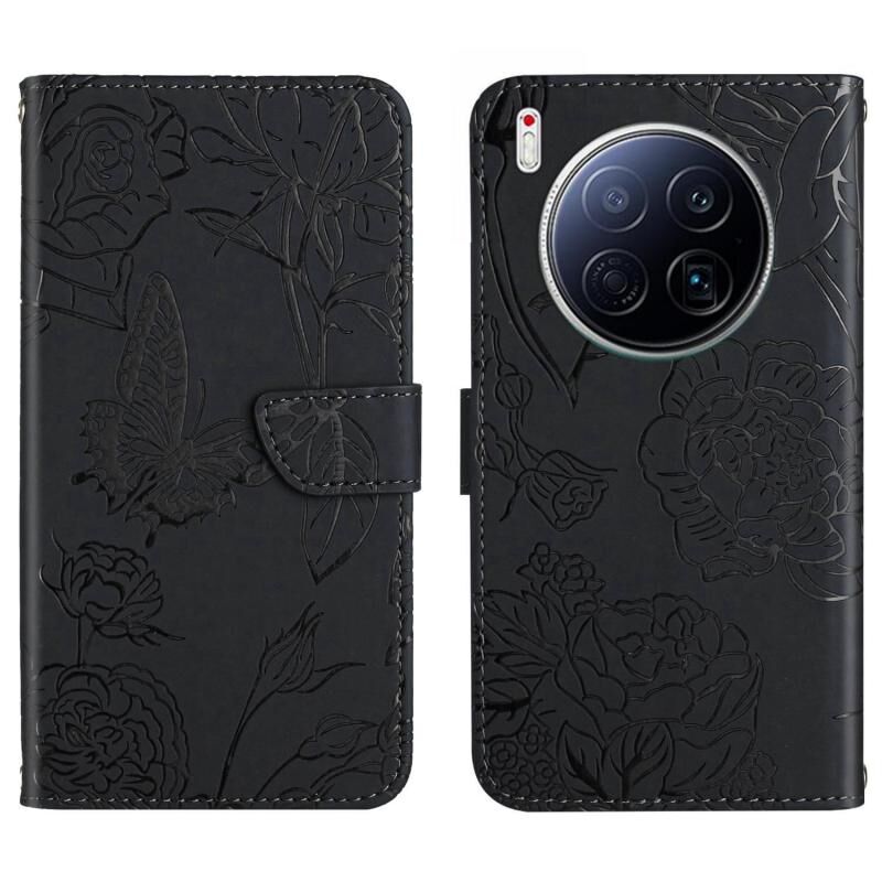 For Tecno Camon 40 Premier Skin Feel Butterfly Embossed Flip Leather Phone Case(Black)