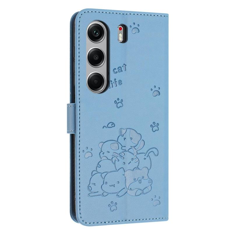 For Tecno Camon 40 Pro 4G Embossed Kitten Phone Leather Case with Lanyard(Blue)