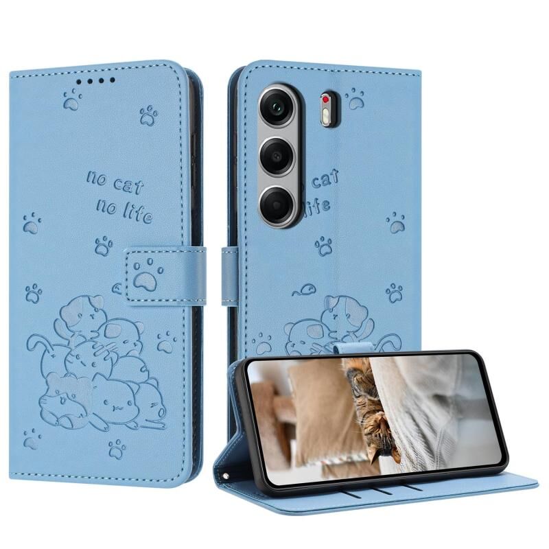 Θήκη δέρματος τηλεφώνου με ανάγλυφο γατάκι και λουρί για Tecno Camon 40 Pro 4G (Μπλε)