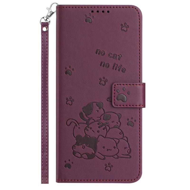 Θήκη δέρματος τηλεφώνου με ανάγλυφο γατάκι και λουρί για Tecno Camon 40 Pro 4G (Κρασοκόκκινο)