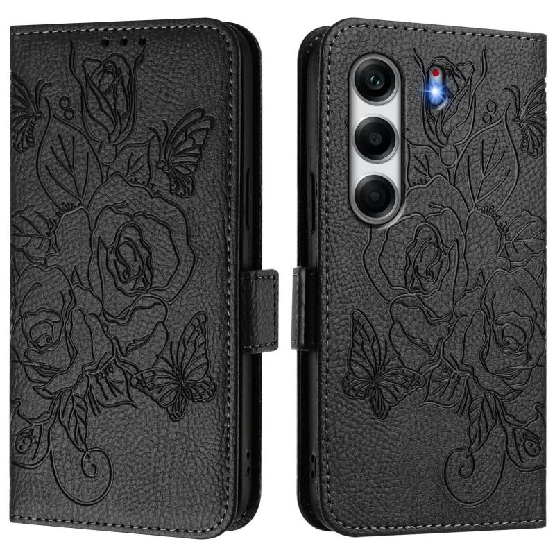 For Tecno Camon 40 Pro 4G Embossed Rose RFID Anti-theft Leather Phone Case(Black)