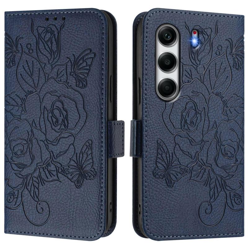For Tecno Camon 40 Pro 4G Embossed Rose RFID Anti-theft Leather Phone Case(Dark Blue)