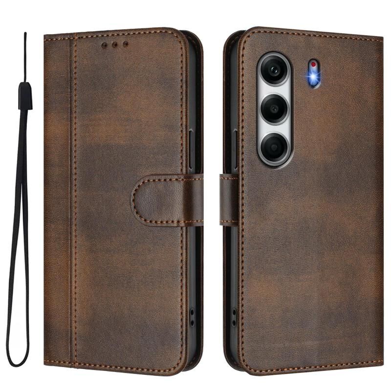 For Tecno Camon 40 Pro 4G Line Splicing Buckle Retro Leather Phone Case(Brown)
