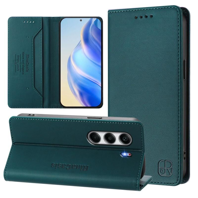 Θήκη τηλεφώνου Tecno Camon 40 Pro 4G RC01 Διπλά Διπλωμένη Μαγνητική Απορρόφηση RFID Δερμάτινη (Σκούρο πράσινο)
