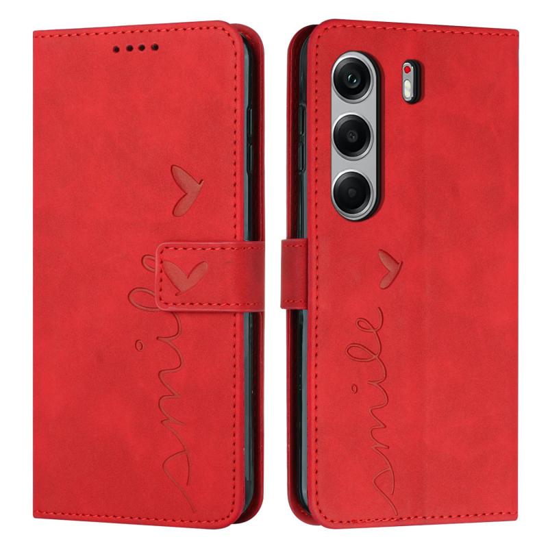For Tecno Camon 40 Pro 4G Skin Feel Heart Embossed Leather Phone Case with Long Lanyard(Red)