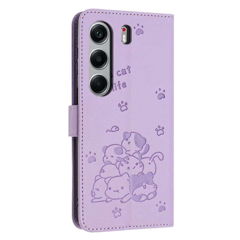 For Tecno Camon 40 Pro 5G Embossed Kitten Phone Leather Case with Lanyard(Purple)