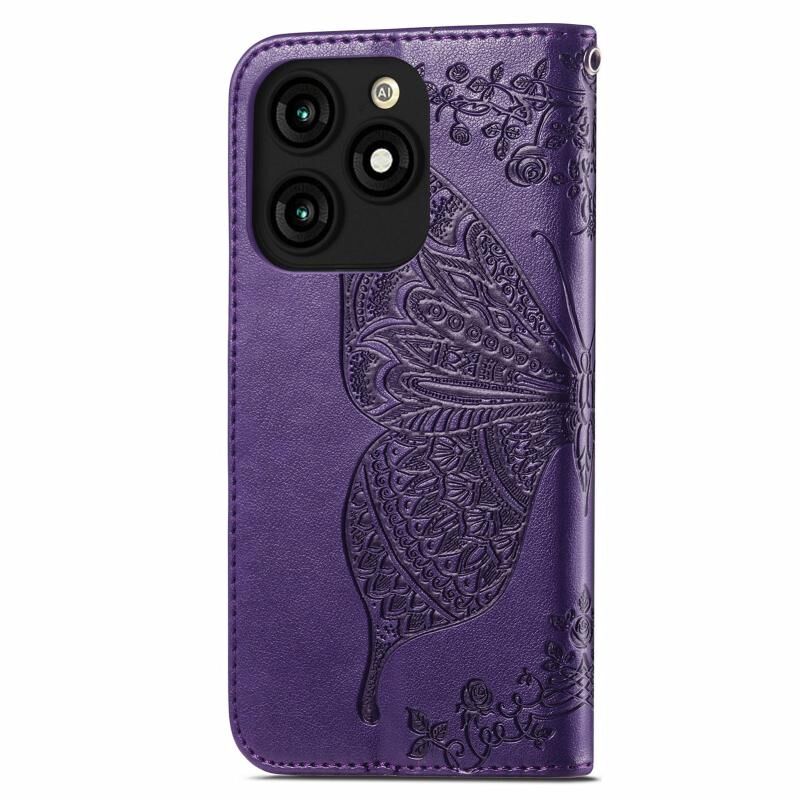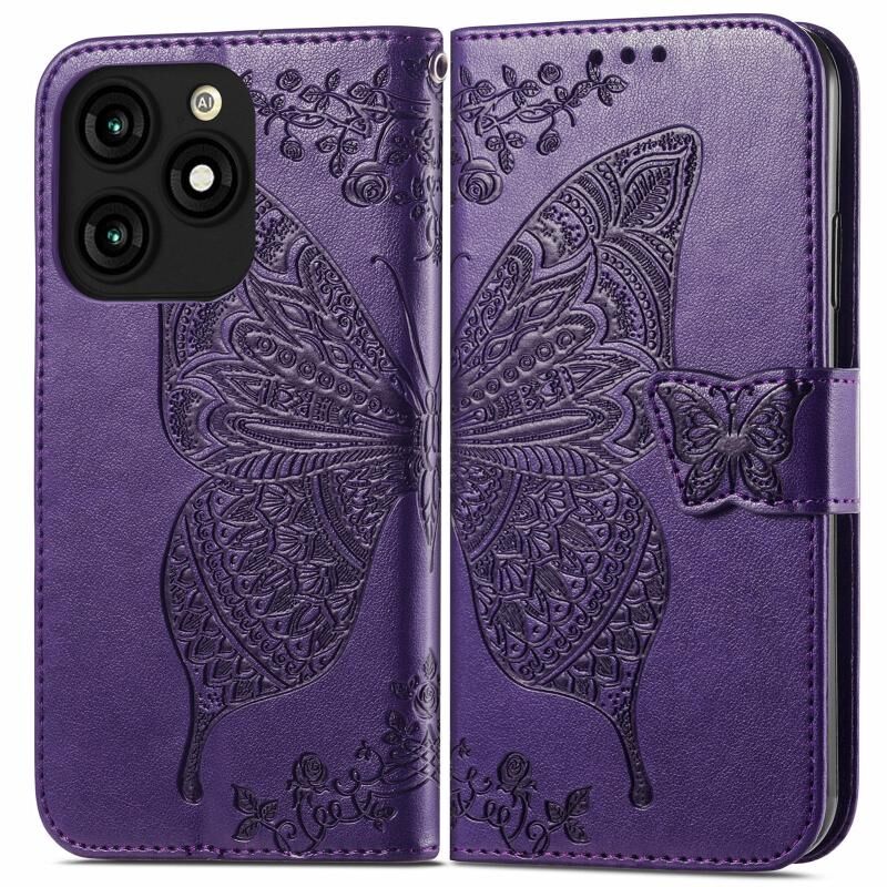 Θήκη τηλεφώνου από δέρμα με ανάγλυφο σχέδιο πεταλούδας και λουλουδιών για Tecno Itel A70 (Μαύρο)
