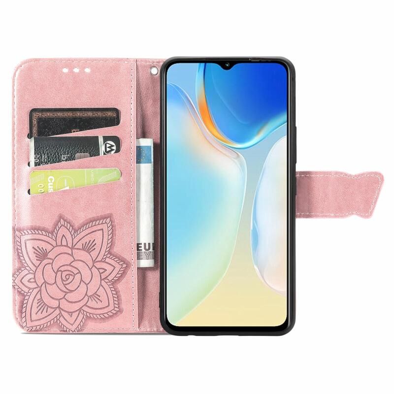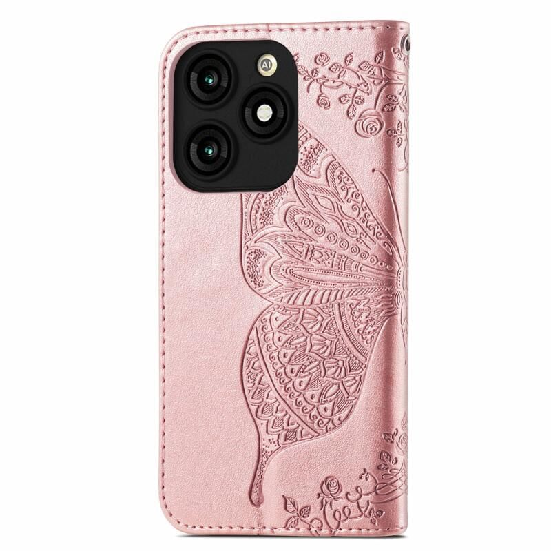 Θήκη τηλεφώνου από δέρμα με ανάγλυφο σχέδιο πεταλούδας και λουλουδιών για Tecno Itel A70 (Μαύρο)