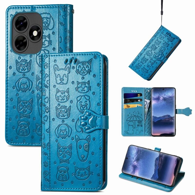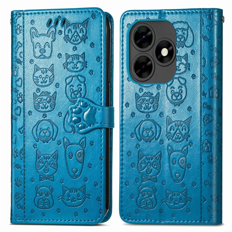 Θήκη τηλεφώνου Tecno Itel S23+ από δέρμα με ανάγλυφο σχέδιο γάτας και σκύλου (Γκρι)
