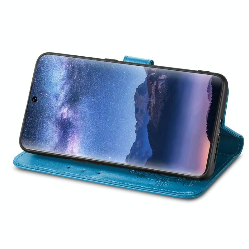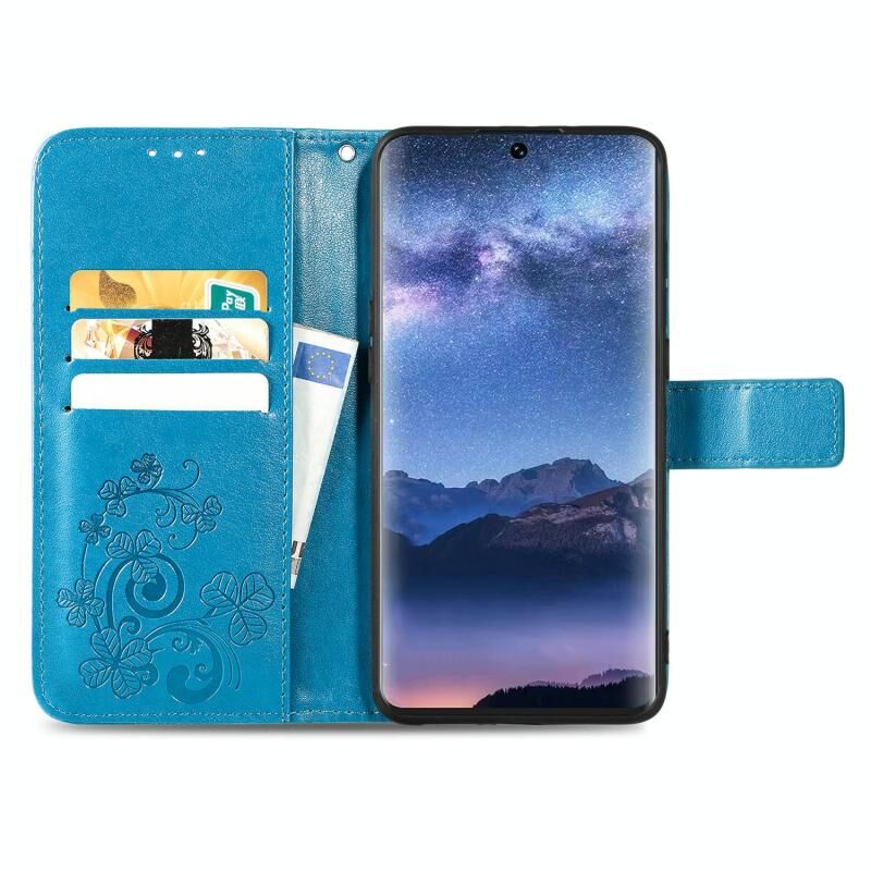 Για Tecno Itel S23 + τετράφυλλο κούμπωμα ανάγλυφο αγκράφα δερμάτινη θήκη τηλεφώνου (μπλε)
