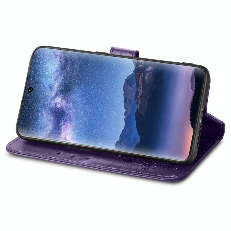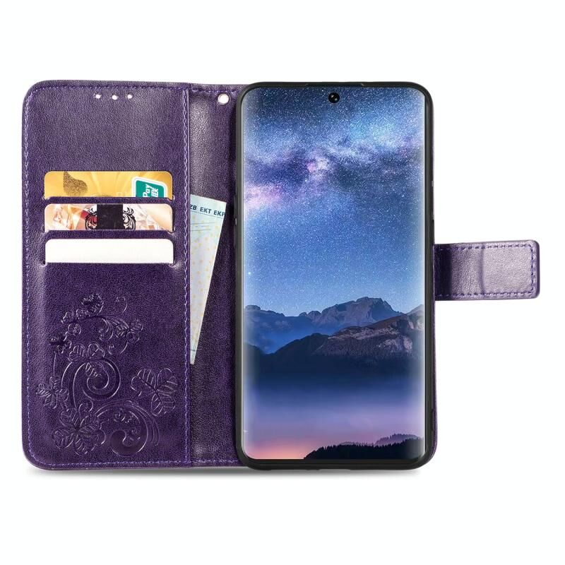 Για Tecno Itel S23 + τετράφυλλο κούμπωμα ανάγλυφο αγκράφα δερμάτινη θήκη τηλεφώνου (μωβ)