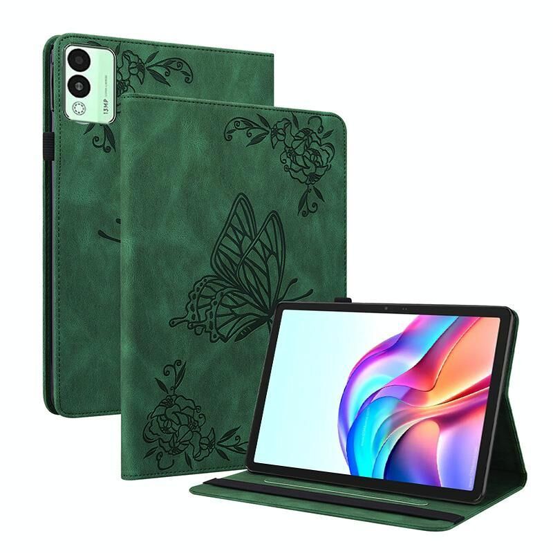 Θήκη Ταμπλέτας από Δέρμα με ανάγλυφο σχέδιο Πεταλούδας για Tecno Megapad 11 (Πράσινο)