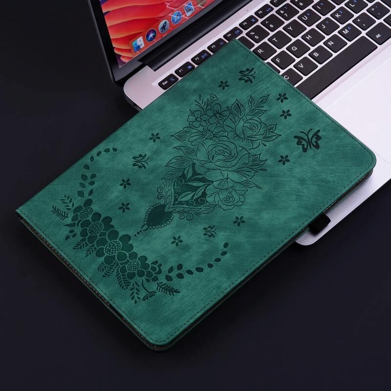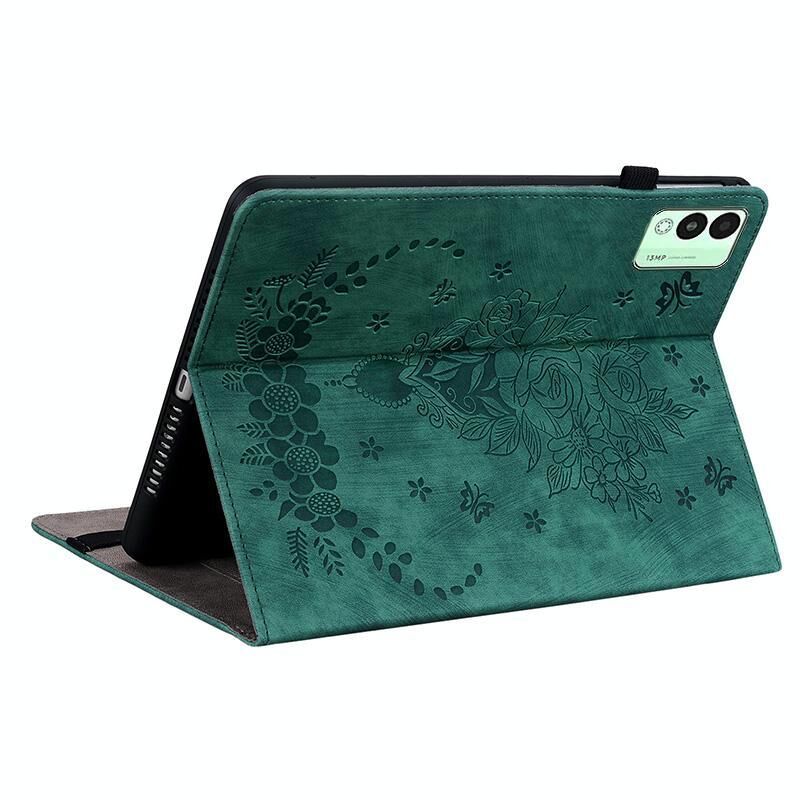 Θήκη Ταμπλέτας από Δέρμα με Χαρακτό Σχέδιο Πεταλούδας για Tecno Megapad 11 (Ροζ)