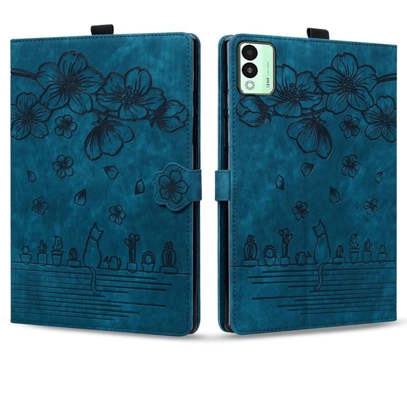 For Tecno MegaPad 11 Cartoon Sakura Cat Embossed Leather Tablet Case(Blue)