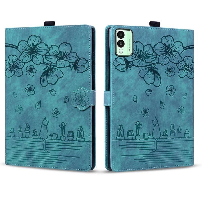 For Tecno MegaPad 11 Cartoon Sakura Cat Embossed Leather Tablet Case(Green)