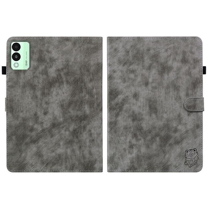 Θήκη δερμάτινη με σχέδιο τίγρης για Tecno Megapad 11, τύπου flip (Γκρι)