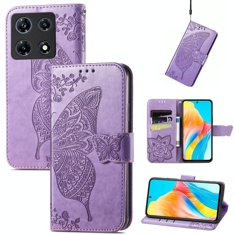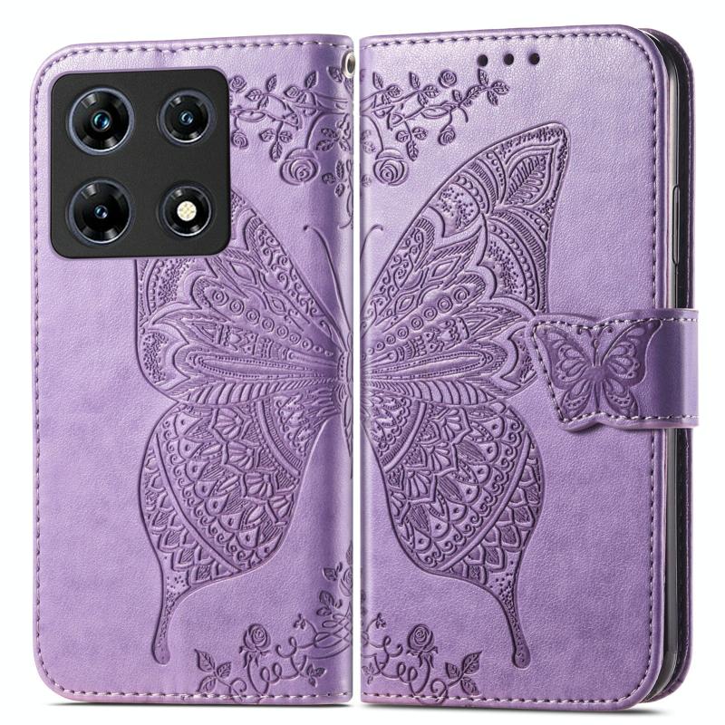 For Tecno Note 30 Pro Butterfly Love Flower Embossed Leather Phone Case(Light Purple)