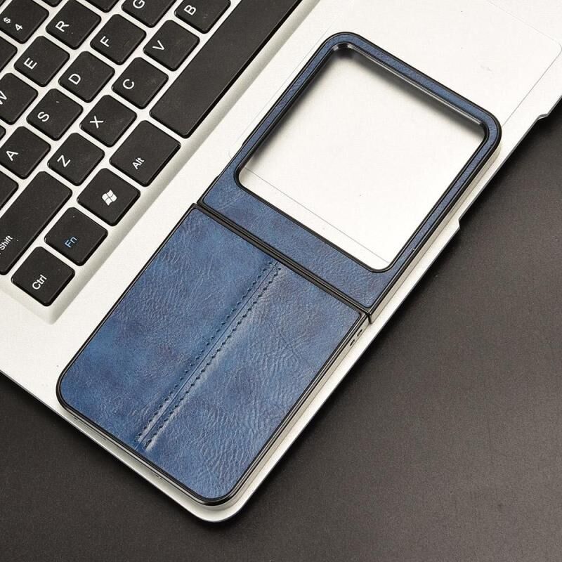 For Tecno Phantom V Flip2 Cow Pattern Sewing Back Cover Phone Case(Blue)