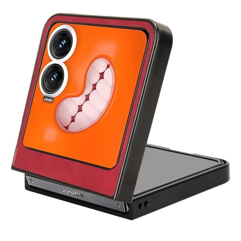 For Tecno Phantom V Flip2 Cow Pattern Sewing Back Cover Phone Case(Red)