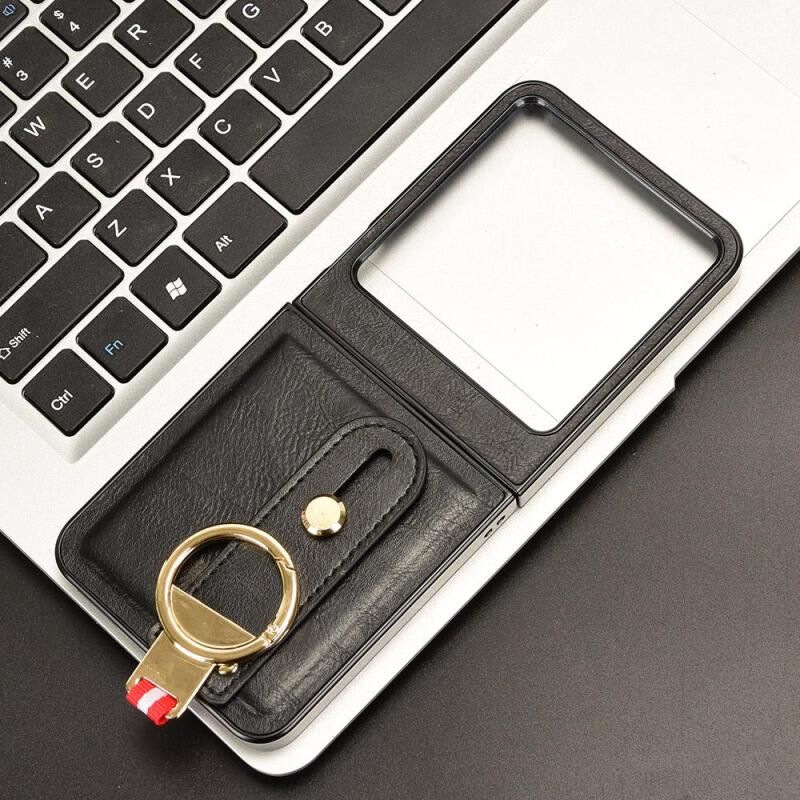 Για Tecno Phantom V Flip2 Wristband δέρμα πίσω τηλέφωνο υπόθεση (μαύρο)