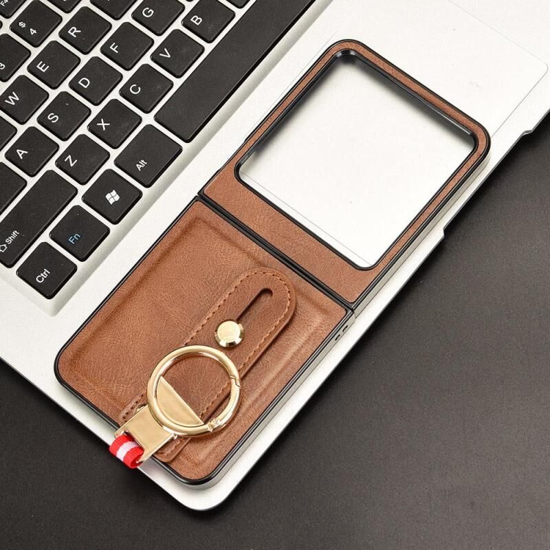 Για Tecno Phantom V Flip2 Wristband δέρμα πίσω τηλέφωνο υπόθεση (καφέ)