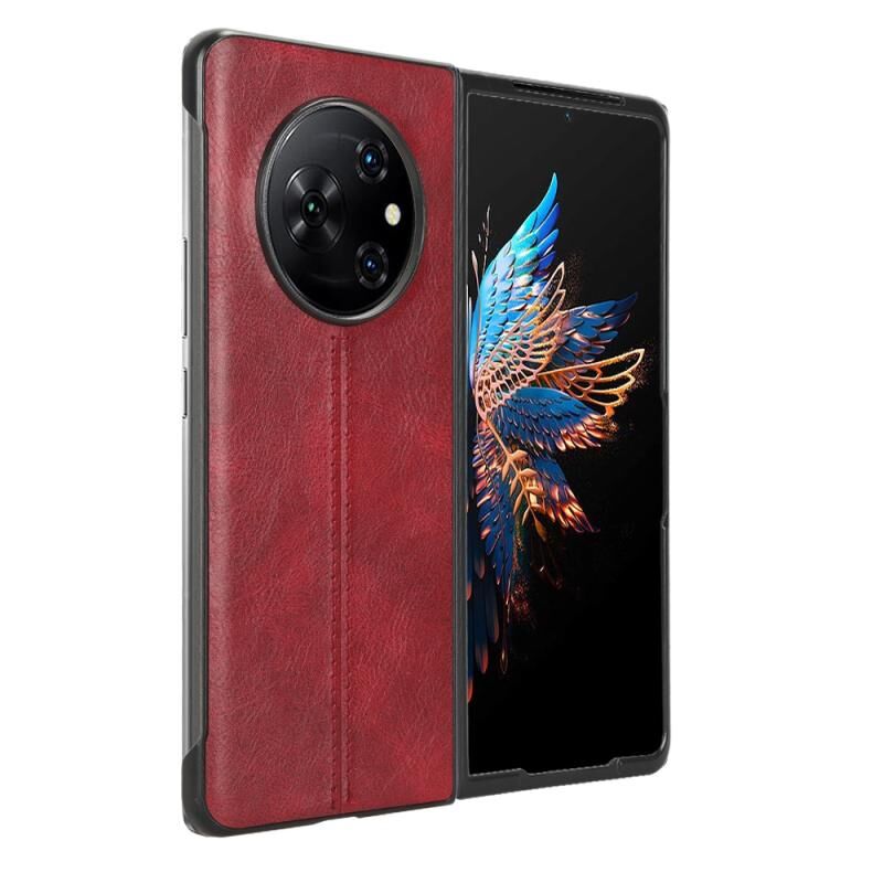 Για Tecno Phantom V Πτυσσόμενο μοτίβο αγελάδας ράψιμο πίσω κάλυμμα τηλέφωνο υπόθεση (κόκκινο)