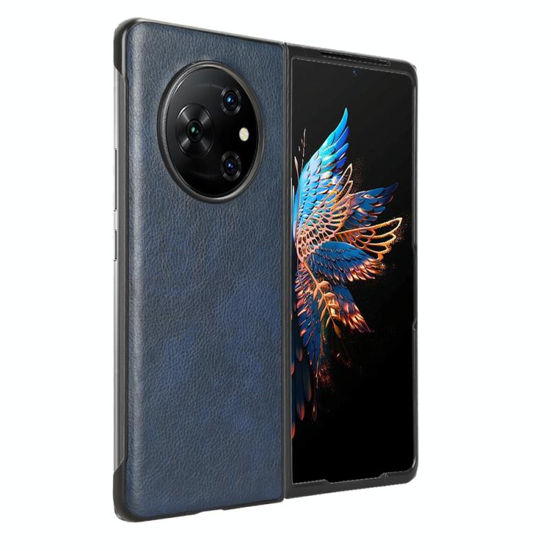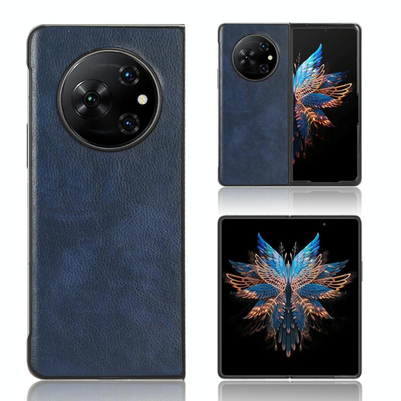 For Tecno Phantom V Fold Litchi Texture Back Cover Phone Case(Blue)
