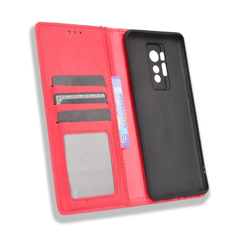 Για Tecno Phantom X Μαγνητική πόρπη Ρετρό μοτίβο οριζόντια Flip δερμάτινη θήκη με κάτοχο & υποδοχή για κάρτες & πορτοφόλι (κόκκινο)