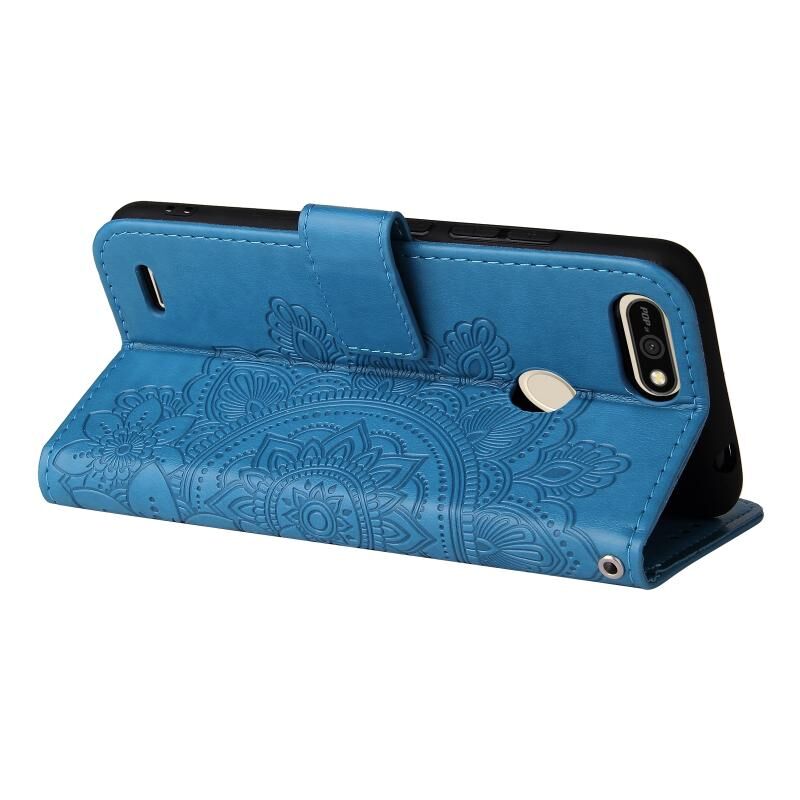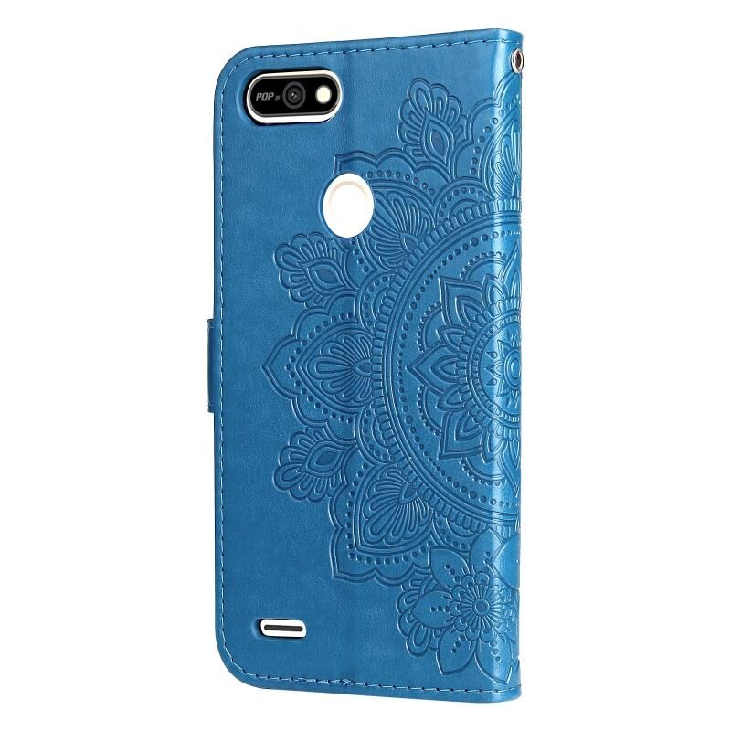 Για Tecno Pop 2 F 7-πέταλο λουλούδια ανάγλυφο μοτίβο οριζόντια Flip PU δέρμα υπόθεση με κάτοχο & υποδοχές για κάρτες & πορτοφόλι & πλαίσιο φωτογραφιών (μπλε)