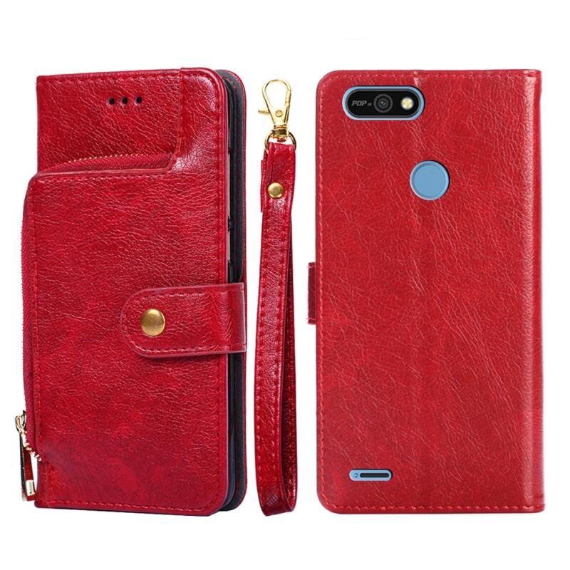Για Tecno Pop 2/Pop 2 F/Pop 2 Pro/Pop 2 Power/Itel P13/B1F φερμουάρ τσάντα δερμάτινη θήκη τηλεφώνου (κόκκινο)