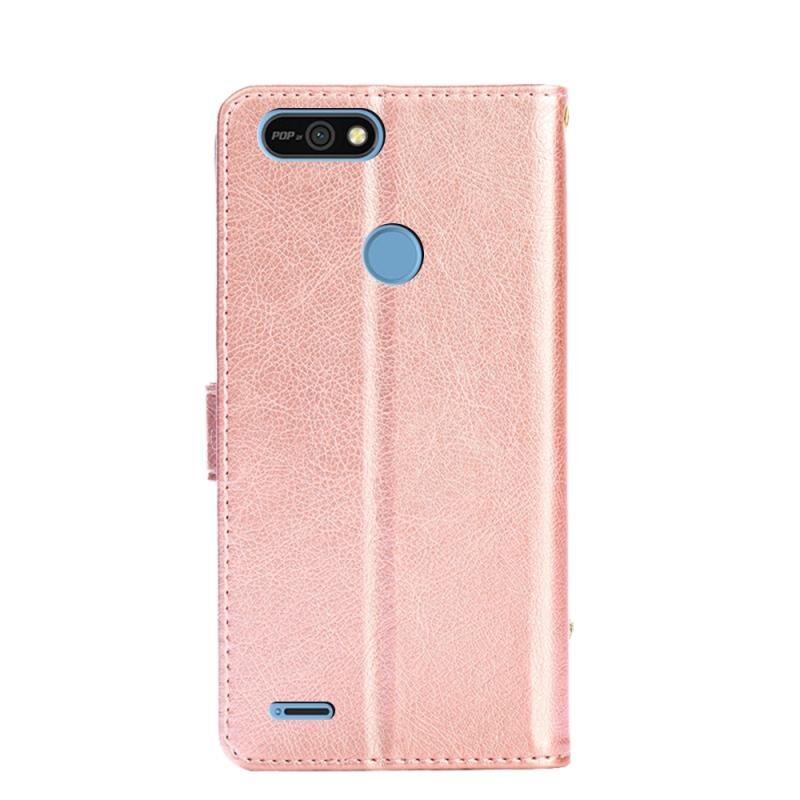 Για Tecno Pop 2/Pop 2 F/Pop 2 Pro/Pop 2 Power/Itel P13/B1F φερμουάρ τσάντα δερμάτινη θήκη τηλεφώνου (Rose Gold)