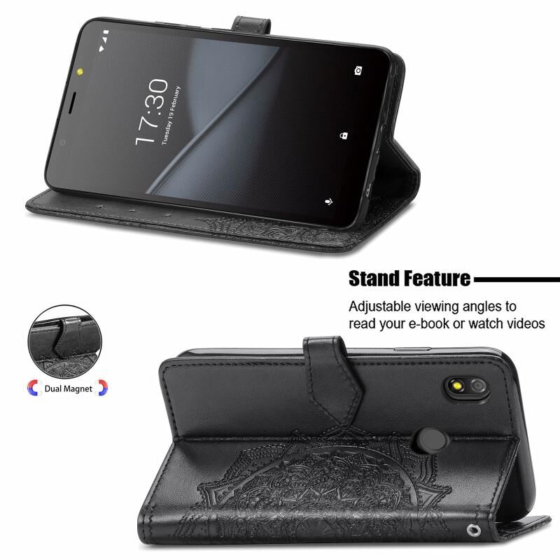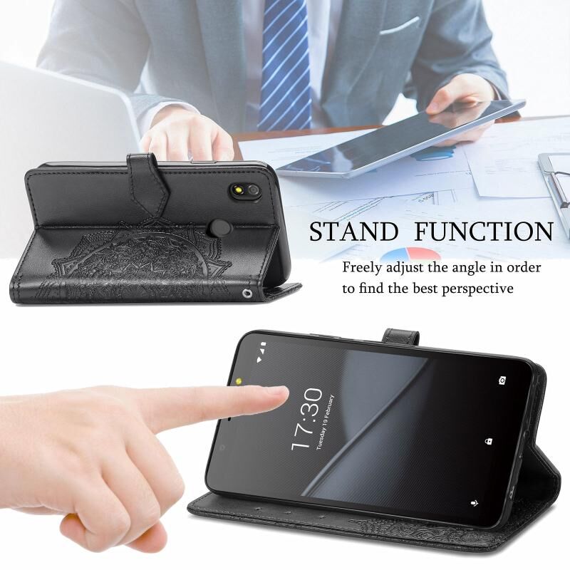 Για TECNO Pop 3 Mandala λουλούδι ανάγλυφο οριζόντια Flip δερμάτινη θήκη με βραχίονα / υποδοχή για κάρτες / πορτοφόλι / κορδόνι (μαύρο)
