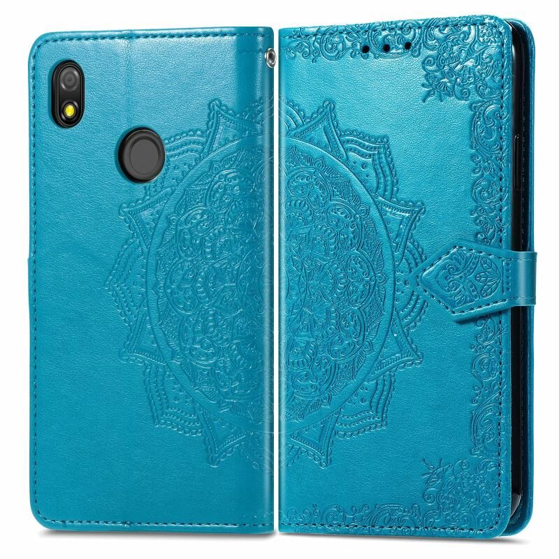 Για TECNO Pop 3 Mandala λουλούδι ανάγλυφο οριζόντια Flip δερμάτινη θήκη με βραχίονα / υποδοχή για κάρτες / πορτοφόλι / κορδόνι (μπλε)