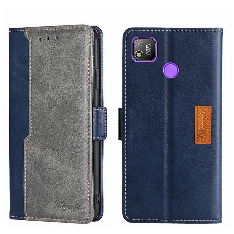 Για Tecno Pop 4 Αντίθετο χρώμα πλευρά πόρπη δερμάτινη θήκη τηλεφώνου (μπλε + γκρι)
