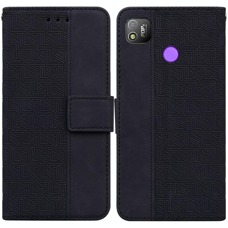 Για Tecno Pop 4 Γεωμετρική ανάγλυφη δερμάτινη θήκη τηλεφώνου (Μαύρο)