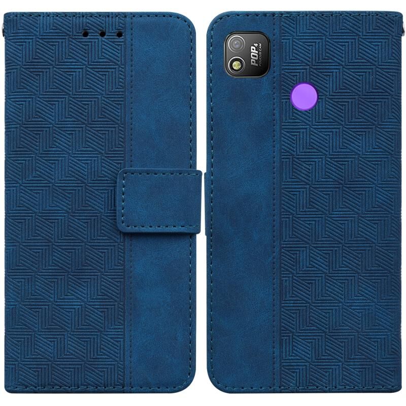Για Tecno Pop 4 γεωμετρική ανάγλυφη δερμάτινη θήκη τηλεφώνου (μπλε)