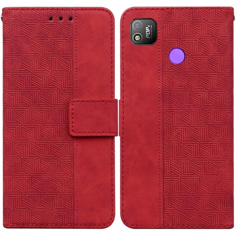 Για Tecno Pop 4 Γεωμετρική ανάγλυφη δερμάτινη θήκη τηλεφώνου (κόκκινο)