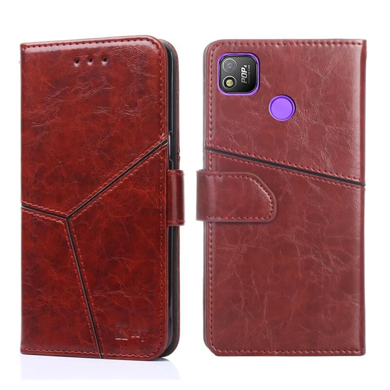 Για Tecno Pop 4 γεωμετρική ραφή οριζόντια Flip υπόθεση τηλεφώνου δέρμα (σκούρο καφέ)