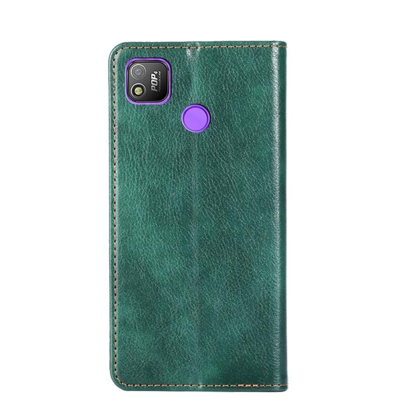 Για Tecno Pop 4 Γυαλιστερό λάδι στερεό χρώμα μαγνητικό δέρμα τηλέφωνο υπόθεση (πράσινο)